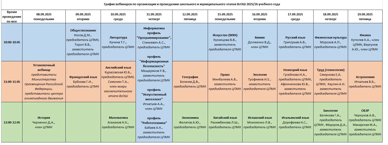 График консультационных вебинаров по организации и проведению школьного и муниципального этапов всероссийской олимпиады школьников 2025/26 учебного года.
